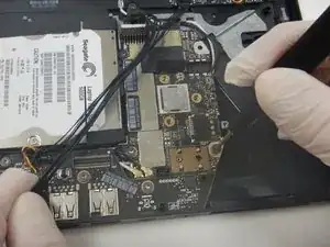 Отсоедините черные и белые коаксиальные кабели от материнской платы.