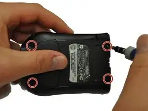 С помощью отвертки с головкой T5 удалить четыре винта, расположенные на задней панели устройства, поворачивая против часовой стрелки.