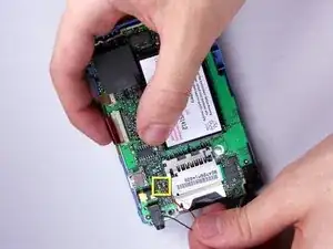 Клей на плате должен все еще держать, и вам нужно убедиться, что она точно на своем месте, иначе устройство не соберется правильно.