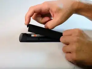 Поместите большой палец на нижнюю часть пульта. Приложите давление, как показано на изображении, чтобы освободить заднюю панель от передней части корпуса.