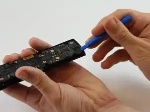 Поместите пластиковый инструмент для открытия или ноготь в зазор в верхней части и поднимите материнскую плату.