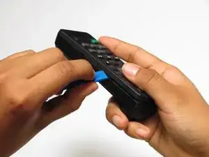 Используйте пластиковый инструмент для открытия вдоль шва сбоку пульта, пока не услышите щелчок. Это означает, что пластиковые защелки, удерживающие пульт вместе, ослабляются.