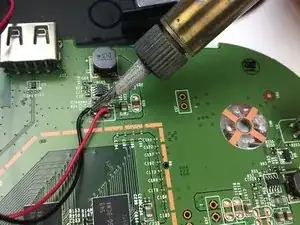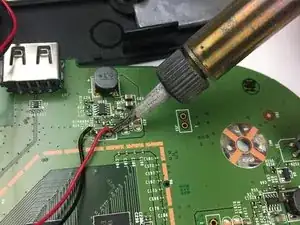 Используя паяльник, выпаяйте синий, красный и черный провода с материнской платы.