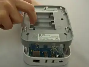 После удаления всех пяти винтов, разъедините корпус, прикладывая легкое давление вверх к положительным контактам в отсеке для батарей.