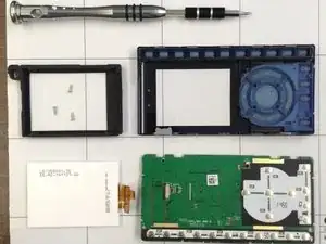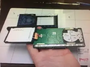 Поместите дисплей LCD обратно в передний корпус устройства и слайдите материнскую плату обратно в два прозрачных зажима.