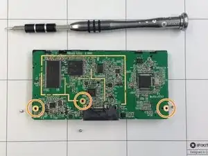 Открутите (3) винта с головкой Philips с помощью отвертки PH000 из набора iFixit, чтобы снять материнскую плату.