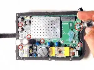 Снимите шесть 10 мм винтов Torx #10, крепящих материнскую плату к задней крышке.