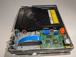 Используйте крестовую отвёртку Phillips #2, чтобы вывернуть два винта 9 мм, удерживающих дисковод на месте.