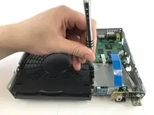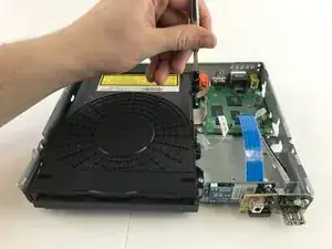 Используйте отвёртку PH1, чтобы выкрутить оба винта длиной 7 мм на стороне дисковода.