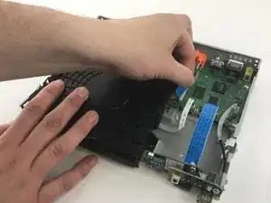 Осторожно потяните ленточные кабели вверх, чтобы отсоединить материнскую плату от модуля Wi‑Fi и платы портов.