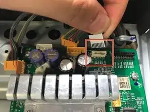 Найдите большую зелёную материнскую плату, расположенную под верхней пластиковой крышкой колонки.
