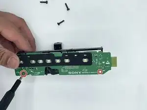 Открутите два винта размером 0,8 мм, крепящих материнскую плату к отсеку корпуса, с помощью крестовой отвёртки #1.