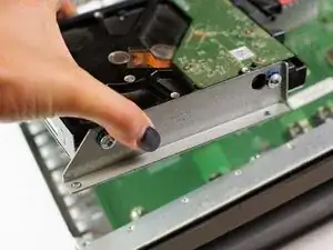 Извлеките жёсткий диск, находящийся сверху материнской платы.