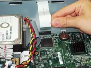 Отключите шлейф, соединяющий жёсткий диск с материнской платой, потянув шлейф прямо вверх. Возможно, потребуется лёгкое покачивание.