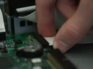 Отсоедините белый ленточный кабель от материнской платы.