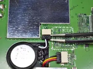 Отключите разъем, показанный около центра материнской платы, с помощью пинцета.