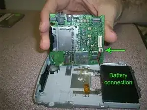 Новая материнская плата подключается к батарее тем же соединением, как показано на фото.