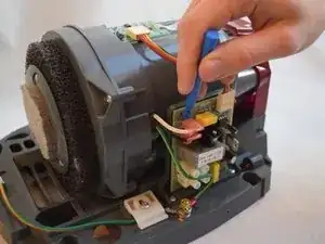 Используйте пластиковый инструмент для открытия, чтобы удалить два провода с розовыми колпачками в верхнем левом углу материнской платы.