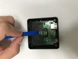 Используйте пластиковый инструмент для вскрытия, чтобы осторожно поднять и удалить материнскую плату из зарядной базы.