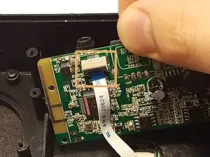 Используя лопатку или пластиковый инструмент для вскрытия, поднимите защёлку ZIF-разъёма ленточного кабеля.