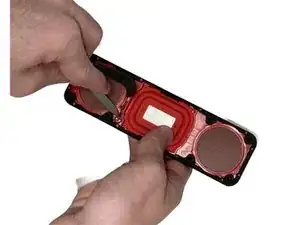 Вставьте металлическую лопатку в клей, удерживающий микрофон.