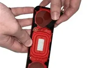 Используя металлическую лопатку, осторожно подденьте по краям динамика, чтобы снять резиновую/пластиковую панель, которая находится над материнской платой.