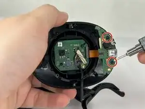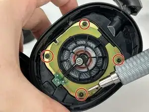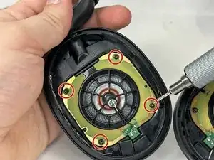 Удалите четыре винта, прикрепляющие платы к корпусу наушников.