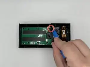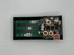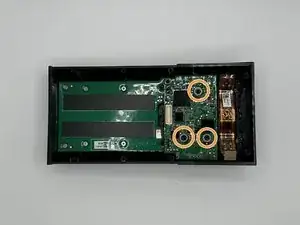 Удалите серебристый винт Phillips #00 длиной 5 мм и два винта Phillips #00 длиной 10 мм с следующей платы.