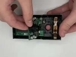 Переверните устройство и аккуратно надавите на объектив камеры, чтобы извлечь камеру и прикреплённую к ней материнскую плату из корпуса.