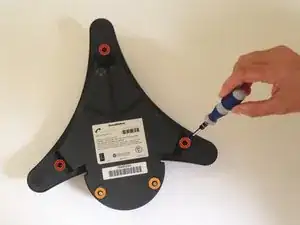 Переверните устройство. Используя отвертку Phillips #00, снимите черный винт размером 10 мм на каждой из трех ножек телефона.