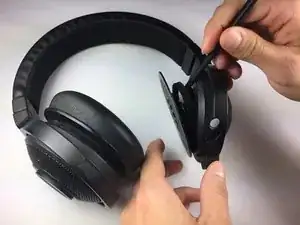 Поднимите крышку корпуса вверх, чтобы снять её с наушников.