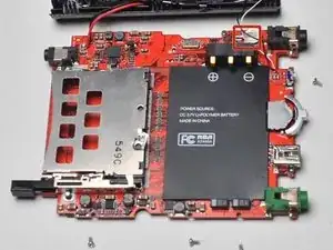 Удалите два винта с крестовым шлицем в нижней части устройства, рядом с разъёмом зарядного устройства и кнопкой извлечения Compact Flash.