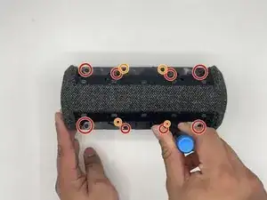 Удалите восемь винтов 1 мм, соединяющих корпус материнской платы и корпус колонки, крестовой отверткой Phillips #1.