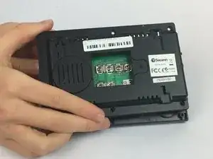 Переверните монитор видеодомофона Swann так, чтобы нижняя сторона была направлена вверх.