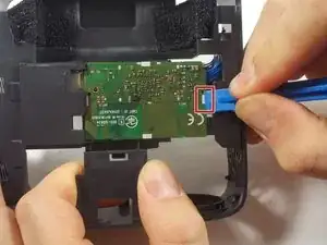 С помощью лопатки iFixit приподнимите чёрные пластиковые язычки на задней стороне кабеля платы кнопки питания/джойстика.