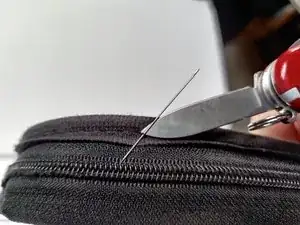 Выберите место на шве и вставьте иглу, чтобы создать зазор между тканью и нитью.