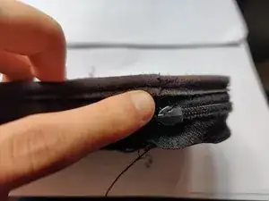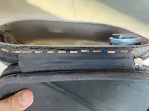 Изнутри имеется два шва: один крепит ленту молнии к коже, второй — внешнюю ткань (так называемый «задний карман» чехла) к коже. Чтобы избежать ошибок, распарывайте шов с внешней стороны чехла (оранжевые стежки)