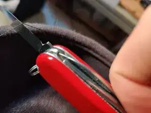Вставьте нож или ножницы в зазор и перережьте нить.