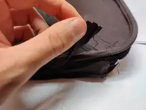 На внутренней нижней части этой половины имеются два шва. Один из них крепит внутренний карман, который удалять не нужно. Поэтому, как и ранее, распустите шов с внешней стороны.