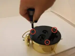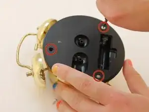 Используя крестовую отвертку, открутите три винта на задней крышке будильника.