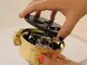 С помощью крестовой отвертки снимите крышку целлиноида с внутреннего механизма будильника.
