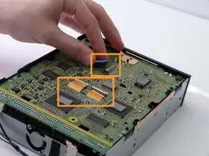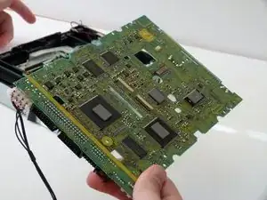 Снимите нижнюю металлическую панель оптического привода. Под ней Вы увидите основную плату.