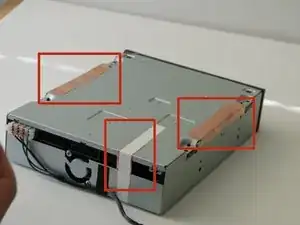 Открутите два металлических зажима по обеим сторонам оптического привода, удалив три набора винтов:
