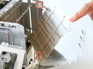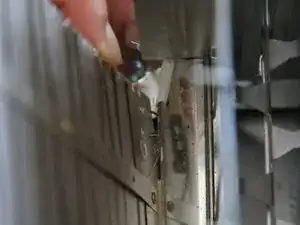 После того как верхняя металлическая панель будет освобождена, поднимите ее и пусть она висит сбоку тостера.