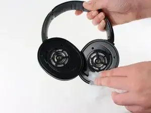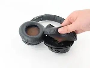 Выравните новую подушку с одной стороны открытых наушников, широкий конец к верху.
