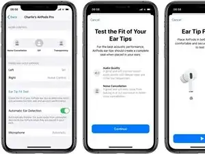 Вставьте AirPods и выполните тест посадки в настройках iOS, если доступно.