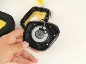 Аккуратно снимите наушник с наушников, захватив нижнюю часть амбушюра и отрывая его от края, который удерживает его на месте.