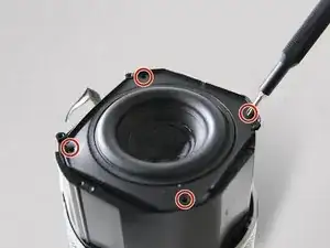 Удалите четыре винта длиной 10 мм, которые соединяют НЧ-динамик с остальной частью динамика, с помощью отвертки Phillips #000.