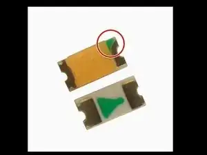 В моем случае мне нужно было заменить 2B светодиод. Найдите зеленую метку перед пайкой светодиода. Зеленая метка указывает на драйвер чипа.