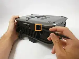 Вставьте пластиковый инструмент для открытия между краем нижней крышки и основным корпусом.